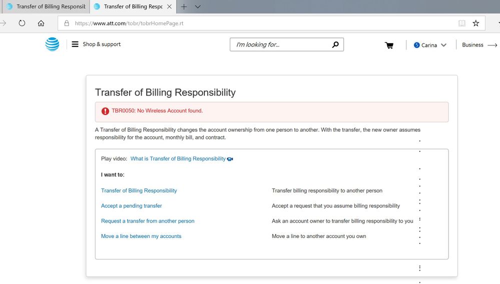 Att accept transfer billing responsibility. Enter the requested info and select Continue. 992020 Select Transfer of Billing Responsibility. A ward for C ommunity E xcellence 2020 Achiever I am not an ATT employee and the views and opinions expressed on this forum are purely my own.