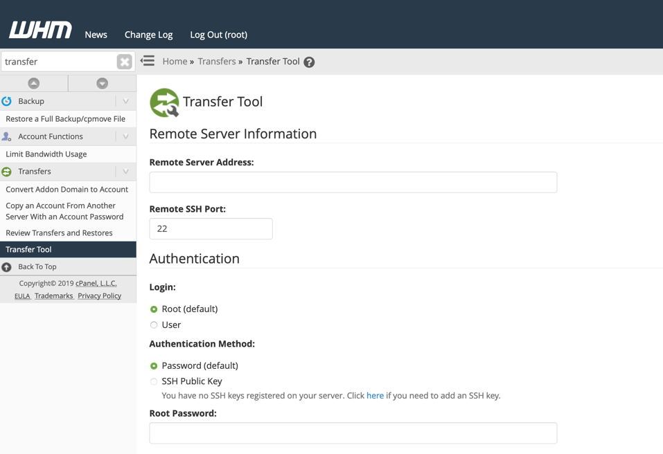 And click on the Transfer Tool item in the Transfers section of the WHM sidebar. We have a server ready running with around 25 web sites we are using whm whmcs and cpanel the task we want is to transfer all cpanels from the old server to the new server be noted that the new server is ready and installed whm whmcs and cpanel. Transfer tool option to rsync files rather than create cpmove file.