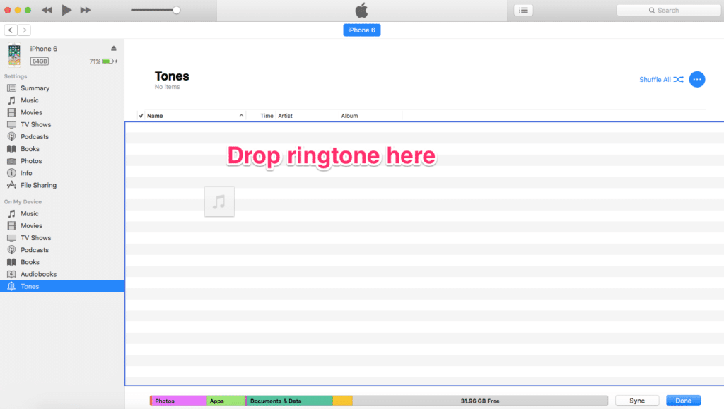 In the left-hand sidebar under Settings click Tones. Make sure that the box next to Sync Tones is checked. IPhone Transfer will start sending ringtones from iPhone to iPhone.