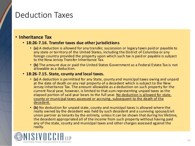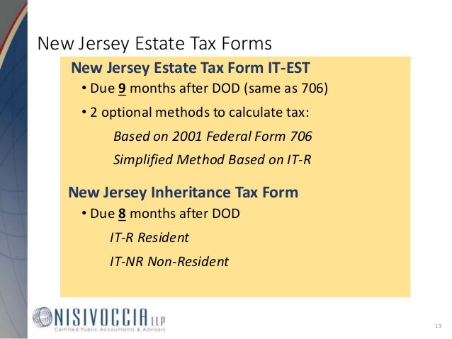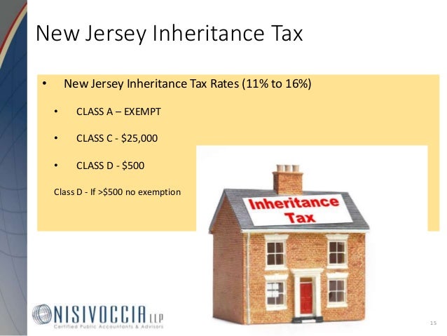 Notice - Transfer Inheritance Tax IRS Enrolled Agents Permitted to Prepare and File New Jersey Transfer Inheritance Tax Returns. New Jersey has had a Transfer Inheritance Tax since 1892 when a 5 tax was imposed on property transferred from a decedent to a beneficiary. Currently the law imposes a graduated Transfer Inheritance Tax ranging from 11 to 16 on the transfer of real and personal property with a value of 50000 or more to certain beneficiaries.