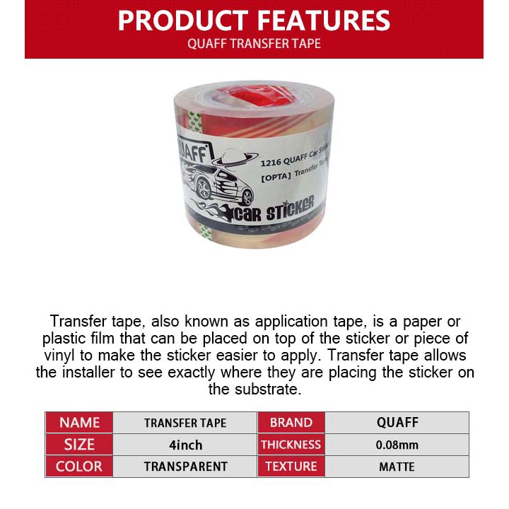 Quaff transfer tape. After the decal has been cut and weeded it has to be transferred to a substrate. QUAFF TRANSFER TAPE FOR CAR STICKER PVC 4INCHES X 100METER used as transfer tape for car sticker use for car stickers to maintain dis alignment 4inches x 100m TRANSFER TAPE 102mm X 100m - Buy 4. Get Results from 6 Engines.