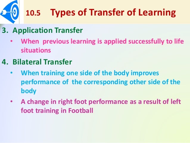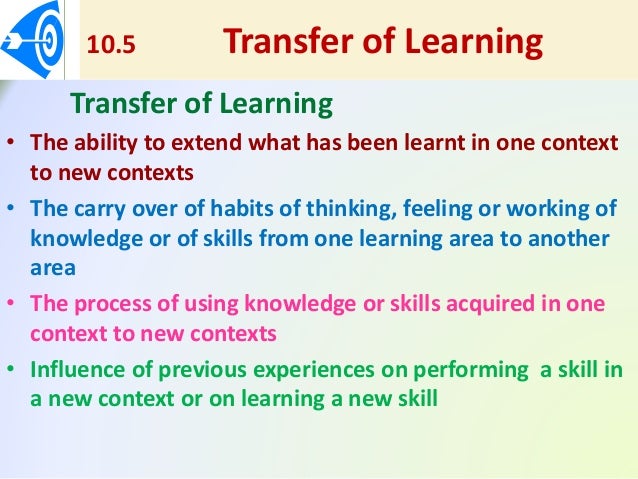 3 Today transfer of learning is usually described as the process and the effective extent to which past experiences also referred to as the transfer source affect learning and performance in a new situation the transfer target. Life skills transfer is an essential process but it has yet to be fully delineated within the sport psychology literature. 1232006 Jump to navigation Jump to search.