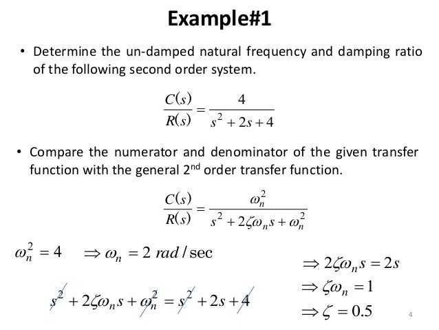 3272011 Yes thats the case for a second order lowpass system or a second order lowpass section of a more complex system. Damping ratios of each pole returned as a vector sorted in the same order as wn. Solve for the damping ratio of the given system if the transfer function is X sF s.