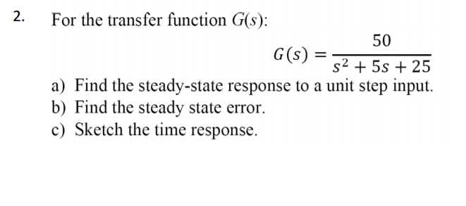 Hs s 3 s 22 find the steady-state system response to the following inputs. Because when we take the sinusoidal response of a system we calculate the steady state response by calculating the magnitude of the transfer function H s and multiplying it by the input sine. The response that it gives before settling down to this steady state is called its transient response.