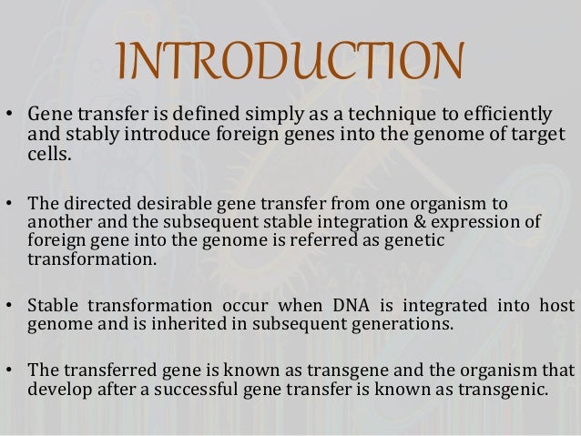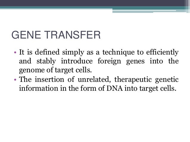 Bacterial-encoded virus-like elements called gene transfer agents GTAs have been found to package random fragments of the host chromosome and transfer them to another bacteria contributing. Expression of foreign gene into the genome is referred as genetic transformation. Gene transfer definition the insertion of copies of a gene into living cells in order to induce synthesis of the genes product.
