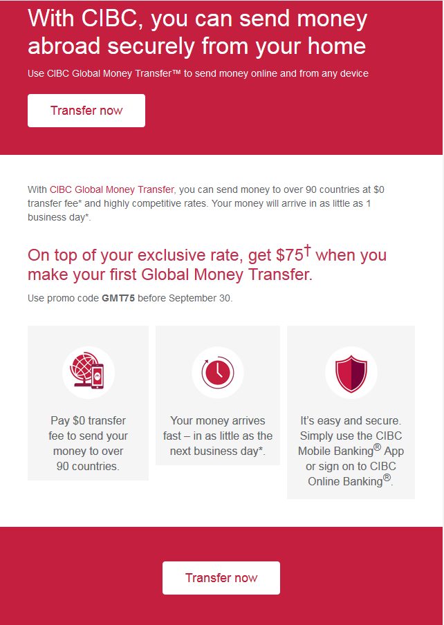 Ask them to transfer your money into your new Canadian account. 912020 CIBCs Global Money Transfer allows customers to send money to around 50 countries including India the Philippines China and the United States. Sign on to CIBC Online Banking or the CIBC Mobile Banking App.
