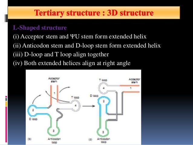It delivers amino acids to ribosome and decodes the information of mRNA. Bacterial species typically have between 60 and 90 types. T PRIMARY STRUCTURE SECONDARY STRUCTURE TERTIARY STRUCTURE 5.