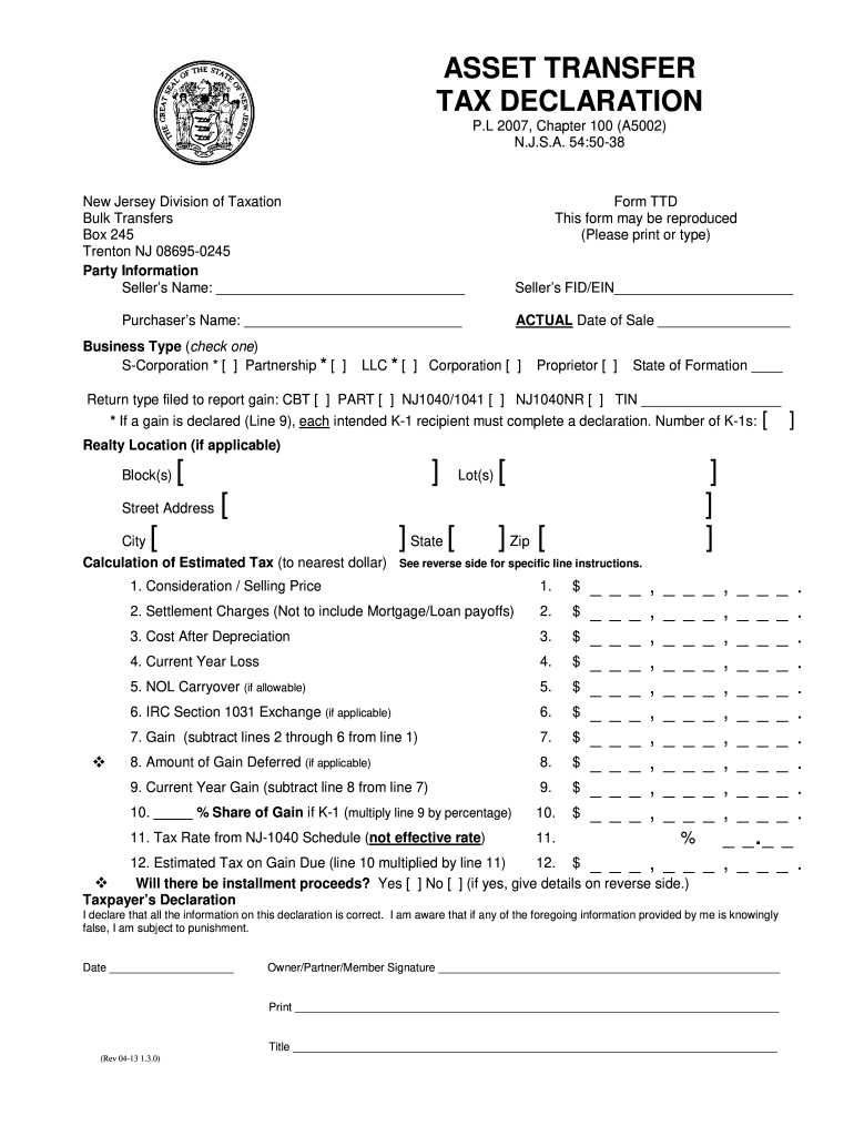 Transfer tax declaration nj. 5415C-1 imposes the controlling interest transfer tax CITT on the buyer. The advanced tools of the editor will lead you through the editable PDF template. New Jersey D i v i si on of Tax ati o n.